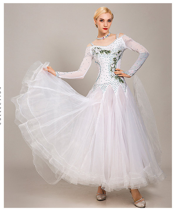 【送料無料】社交ダンス モダンドレス 大きい裾 豪華な社交ダンスドレス 競技着 演出用 スタンダードドレス ワルツ デモ用 パーティー用 ラテン衣装 大きいサイズ