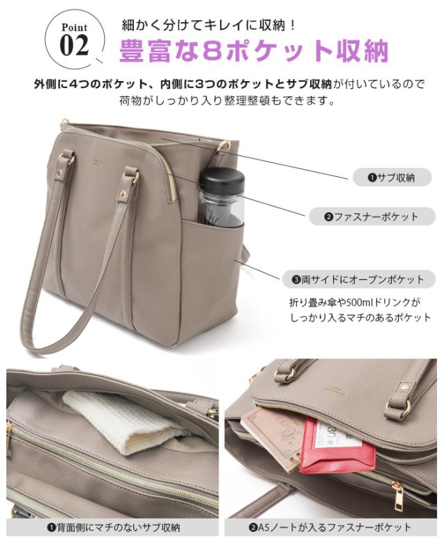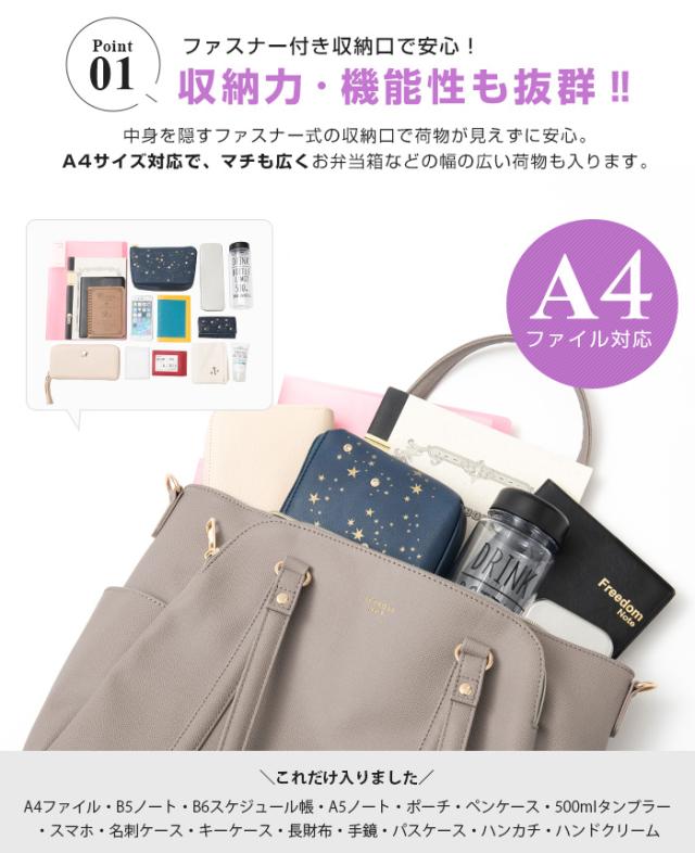 2WAYトートバッグ ショルダー A4 鞄 カバン 多収納 大容量 通勤 通学 レディース【メール便不可】