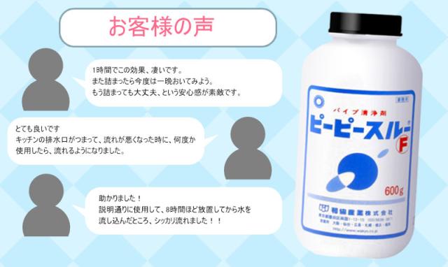 - 以前洗面所の水の流れが悪くなり、ピーピースルーを購入、 それから定期的に使ってます クーポンとポイントでお安く買えました ありがとうございました! またよろしくお願いいたします!
