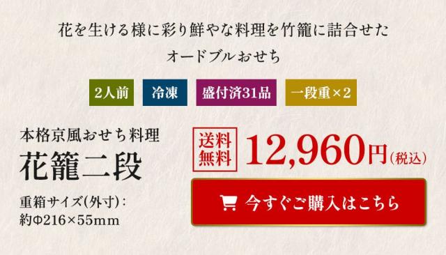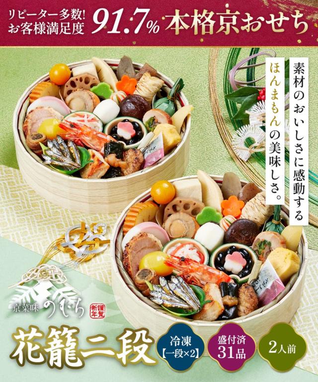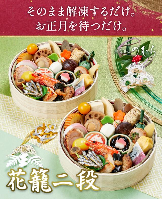 最短元日発送 2026 おせち料理 予約 【送料無料】本格京風 京菜味のむら 「花籠二段」【約七寸 一段重×二組、31品目、2人前】 2026年 おすすめ お節料理 冷凍 冷凍おせち