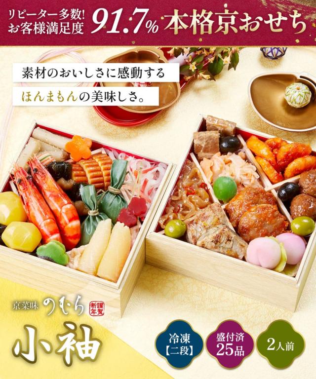 最短元日発送 おせち 2026 おせち料理 予約 【送料無料】本格京風 京菜味のむら 「小袖」【約五寸 二段重、25品目、2人前】2026年 おすすめ お節料理 冷凍 冷凍おせち