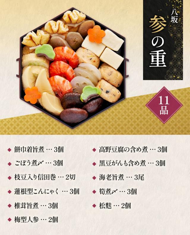 | 参の重 | 餅巾着旨煮 | 小麦、大豆、やまいも |