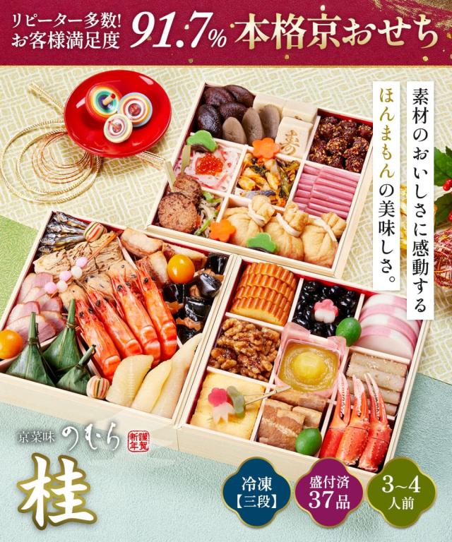 最短元日発送 おせち 2026 おせち料理 予約 【送料無料】本格京風 京菜味のむら 「桂」【三段重、37品目、3人前〜4人前】2026年 おすすめ お節料理 冷凍 冷凍おせち