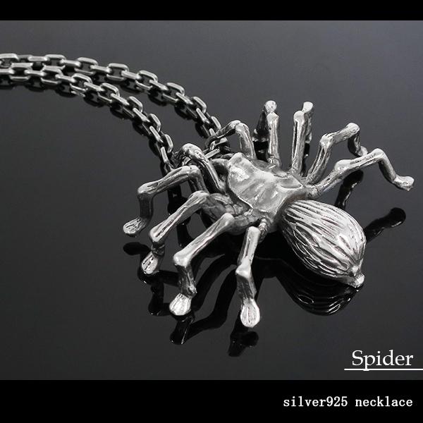 (シルバーアクセサリー シルバーペンダント シルバーネックレス シルバー925 メンズアクセサリー メンズネックレス スパイダー 蜘蛛 くも タランチュラ リアル 個性的 大きめ OXCL100-4C-50 薄め)