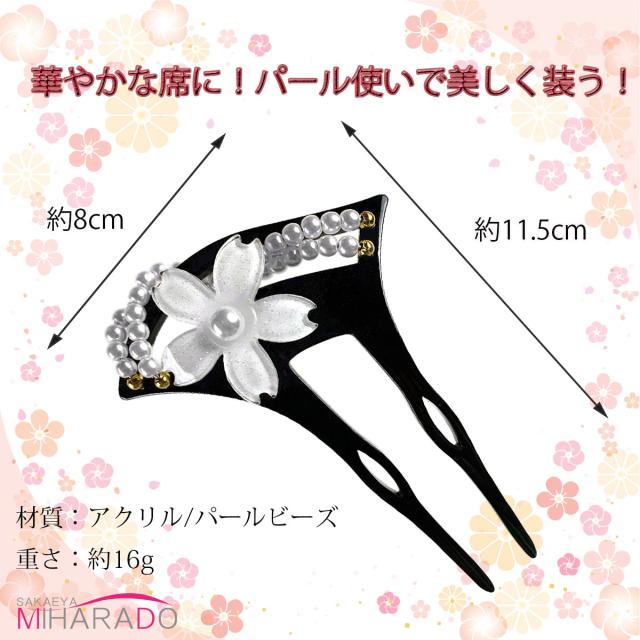 【即納 送料無料】かんざし バチ型 花一輪 パールビーズ 華やか かわいい 振袖 留袖 扇型 結婚式 扇型 付下げ 色留袖 黒留袖 留め袖 訪問着 結婚式 入学式