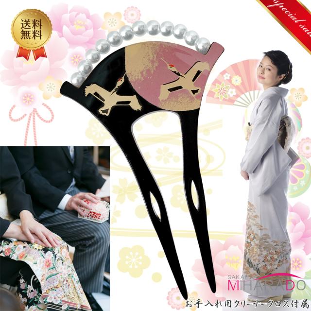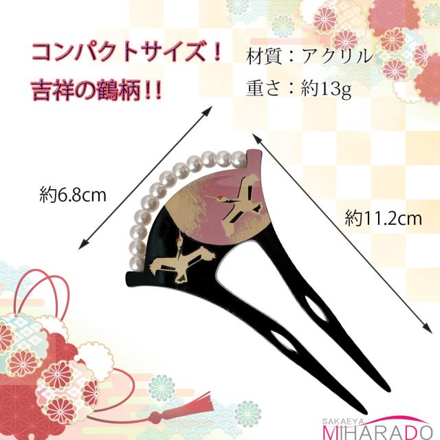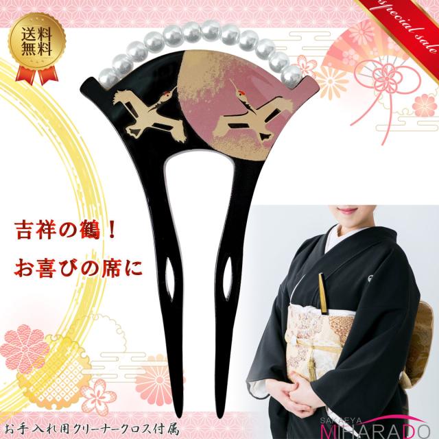 【即納 送料無料】かんざし バチ型 鶴 パールビーズ 伝統柄 留袖 扇型 結婚式などに サイズ小さめ 扇型 結婚式 扇型 付下げ 色留袖 黒留袖 留め袖 訪問着 結婚式 入学式