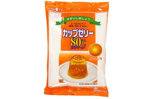 熱湯に溶かすだけ!簡単ゼリーの素です。みんなの人気者!オレンジゼリーをどうぞ。