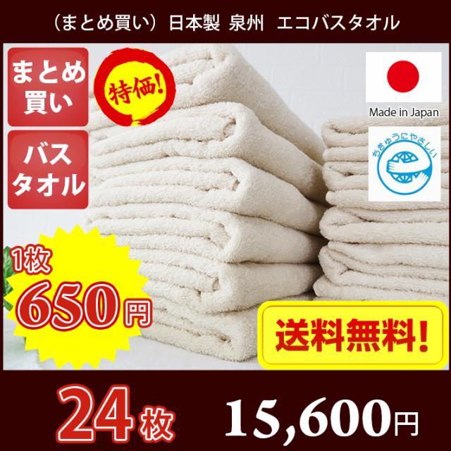 価格破壊!エコマーク付き【日本製 泉州タオル】地球にやさしい無漂白無蛍光エコバスタオル どさっと大量買い 24枚セット【送料無料】介護施設・デイサービス・民泊・業務用 まとめ買い