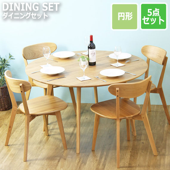 RIVER リバー ダイニング5点セット 円形 (カフェ ダイニング 4人用 ファミリー 新生活 天然木 木製 オーク 無垢 カントリー ナチュラル 北欧 丸み 組立品 シンプル おしゃれ)