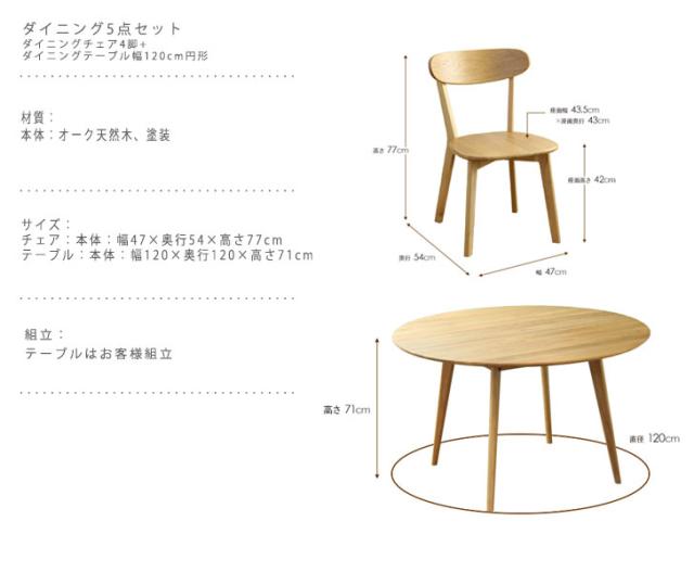 内容:ダイニングチェア4脚+ダイニングテーブル幅120cm円形