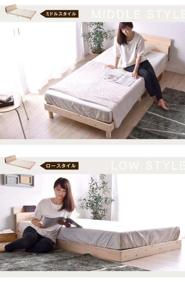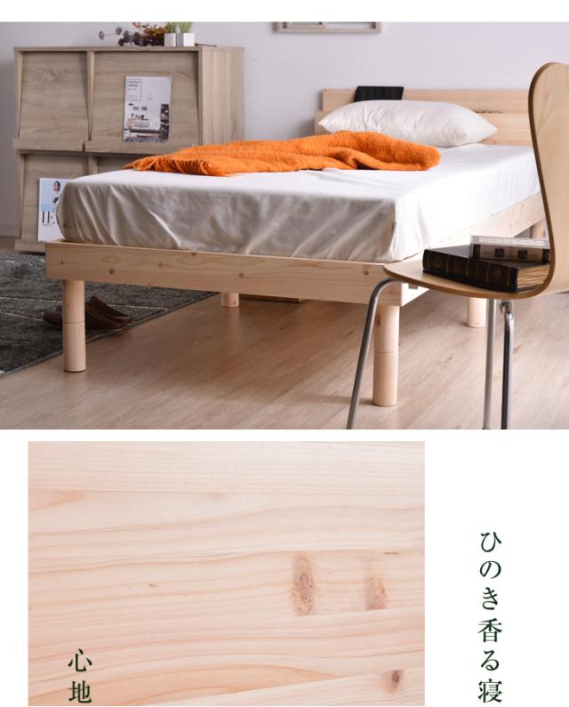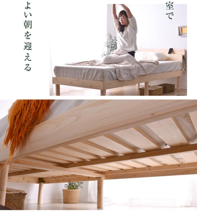 【本日P5%還元】 ベッド ダブル 多機能スマホスタンド&2口 コンセント付き ベッド フレームのみ すのこ 天然木 3段階高さ調節可能 フレームのみ 宮付き ベッド 木製 宮棚 ベッドフレーム 北欧 ベットフレーム ベット ヒノキ 檜 ひのき