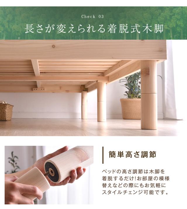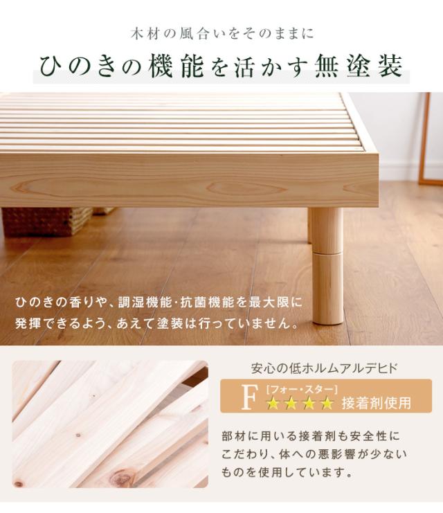 ヘッドボード・フレーム・すのこ・脚:ひのき 集成材 (無塗装)