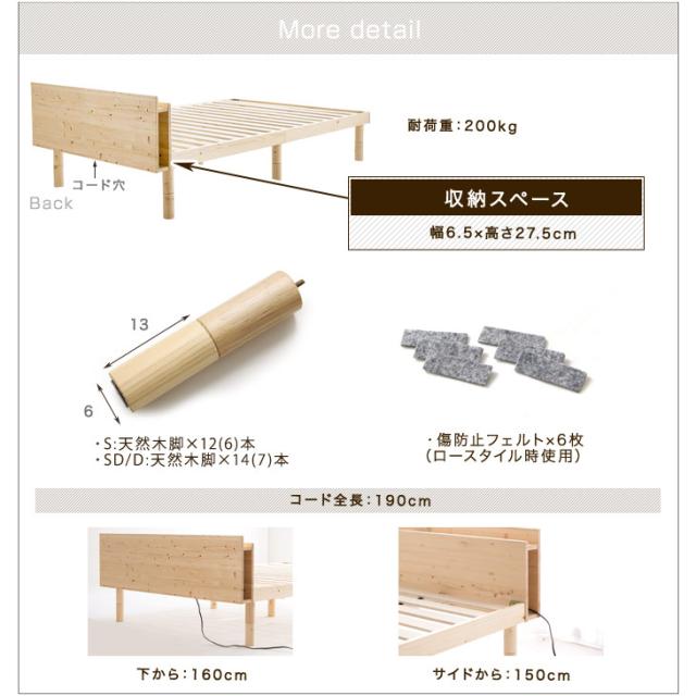 スマホスタンド&ブックシェルフ付き 総ひのき ベッド フレーム 宮棚付きベッド すのこベット 宮付ベッド ダブルサイズ ベット ダブルベット 宮付きベッド ひのきベッド【商品番号:4960005300】