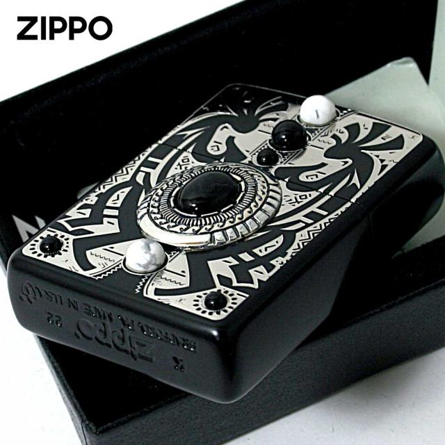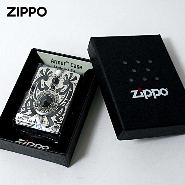 Zippo ジッポライター アーマー ネイティブアメリカン ココペリ 精霊 オニキス ハウライト 天然石 BK ココペリ メール便専用商品