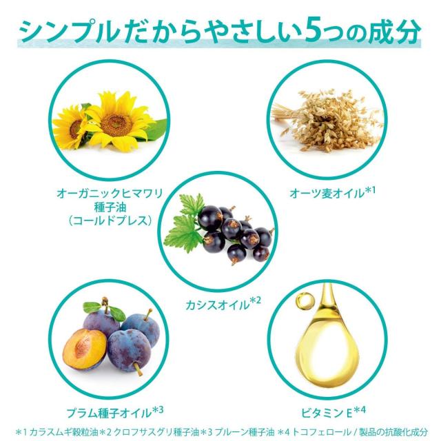商品説明 肌を柔らかくし保湿効果に優れたアーモンドオイル*をベースに、美容効果が期待できる5つのオイルをバランスよく配合。