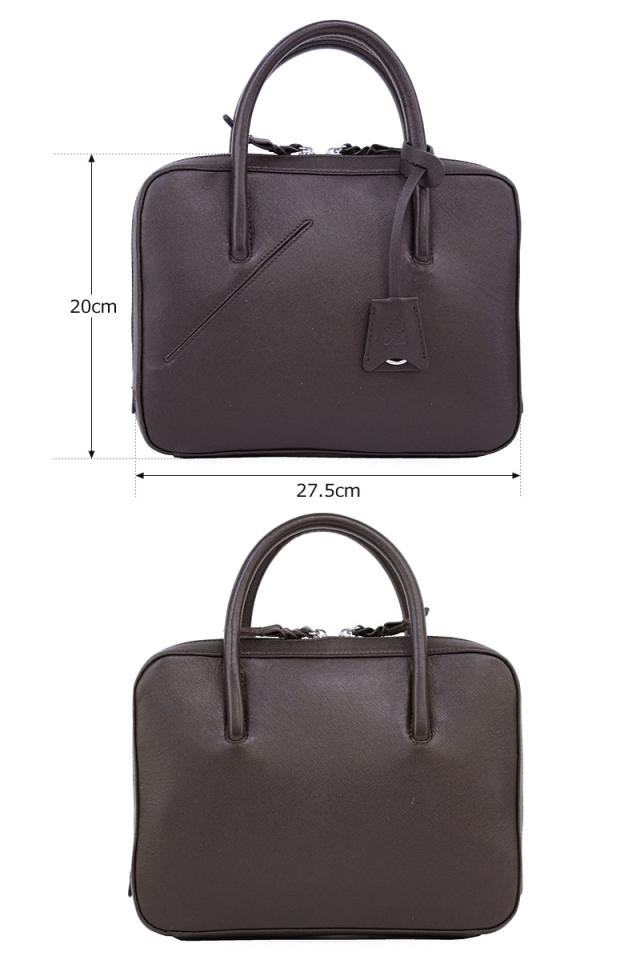 ブリーフケースをそのまま小さくしたようなデザインで、ハンドバッグとしてもクラッチバッグとしても使えるアイテムとなっています。