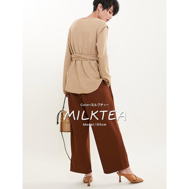 【500円OFFクーポン対象商品】 karei リブニットセーター レディース トップスセーター ウエストラップ リボン結び あったか_f