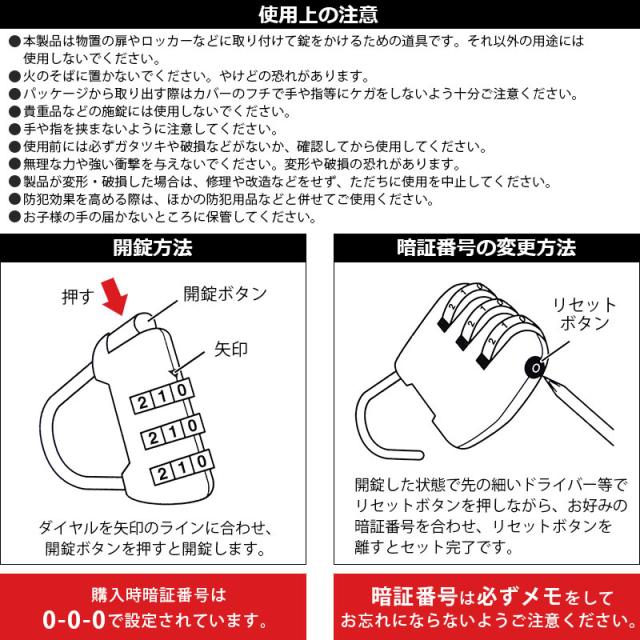南京錠 3桁ダイヤルロック 鍵 防犯 セキュリティ対策 スーツケース 旅行用かばん 旅行カバン 暗証番号タイプ 学校ロッカー 盗難防止