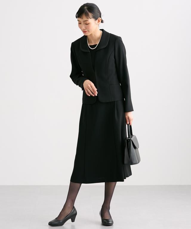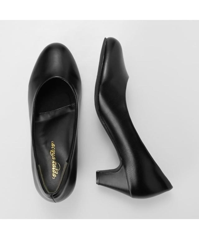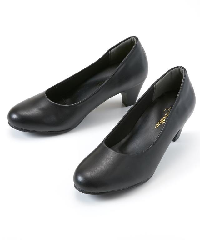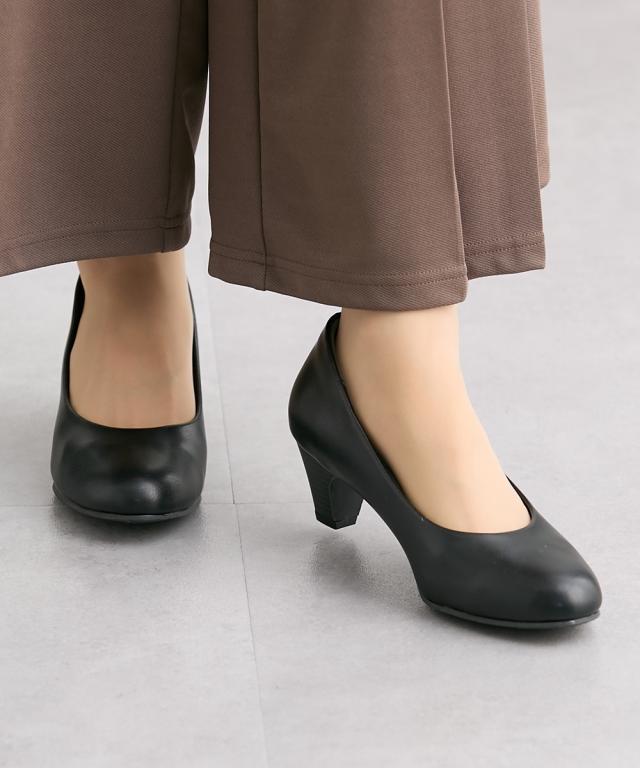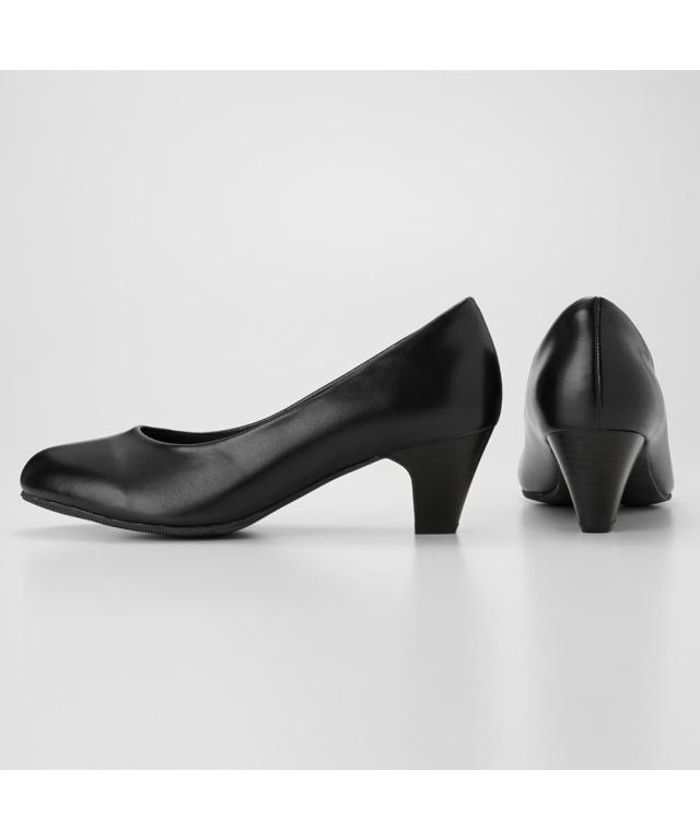 ブラックラウンドトゥミドルヒールパンプス(制菌・消臭中敷)(選べるワイズ)
