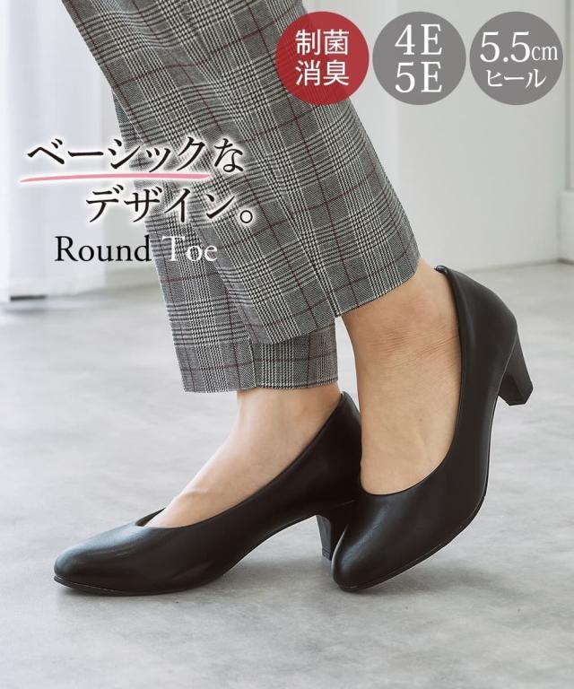 [keyword] 靴 レディースシューズ バッグ アクセサリー 大きいサイズ レディース ミドルヒール 4cm〜 普通 かかと 4E 5E ラウンドトゥ つま先が丸い おしゃれ ストラップなし 太ヒール チャンキーヒール 合成皮革 素材 ベーシック シンプル 定番 着回し ブラックフォーマル 喪服 礼服 冠婚葬祭 法事 葬式 お盆 フォーマル 黒 オフィスに最適 オフィス ビジネス 仕事 通勤 きれいめ 就活 リクルート 面接 [comment] 窮屈感の少ない丸いつま先で履きやすい、ラウンドトゥパンプ