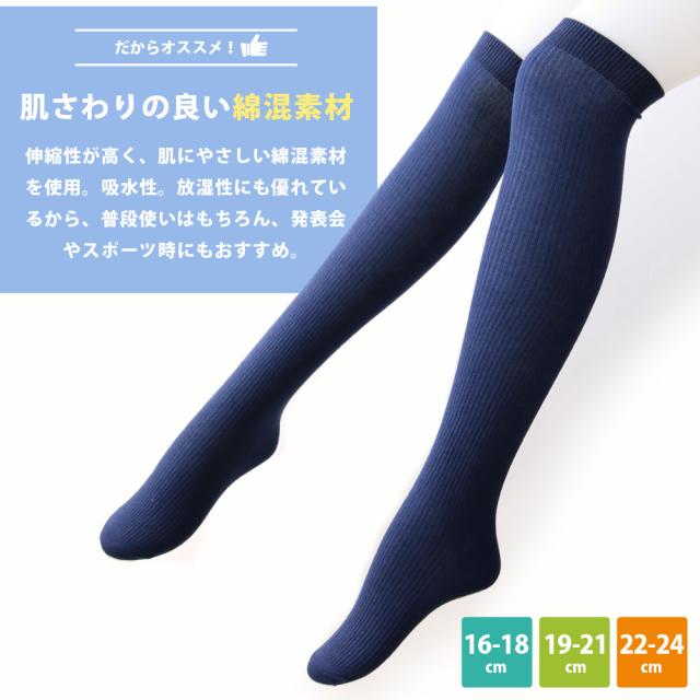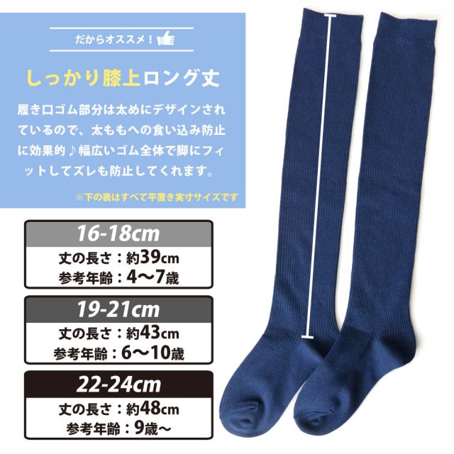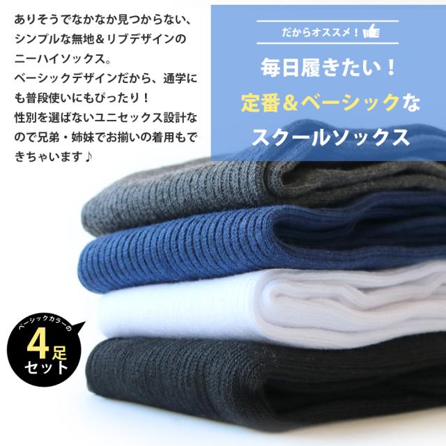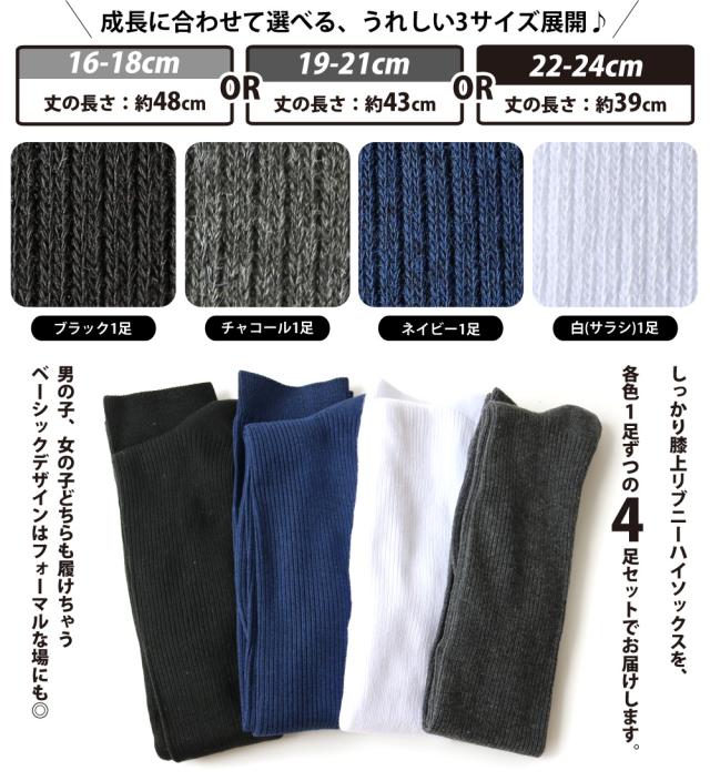 送料無料 オーバーニー 靴下 キッズ 女の子 男の子 ベーシックな縦リブ ニーハイソックス 4足セット 黒 白 紺 チャコール 16-18cm 19-21cm 22-24cm