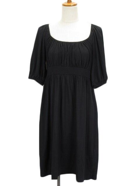 【中古】ジューシークチュール JUICY COUTURE ワンピース フレア ギャザー 五分袖 モダール S 黒 ブラック レディース