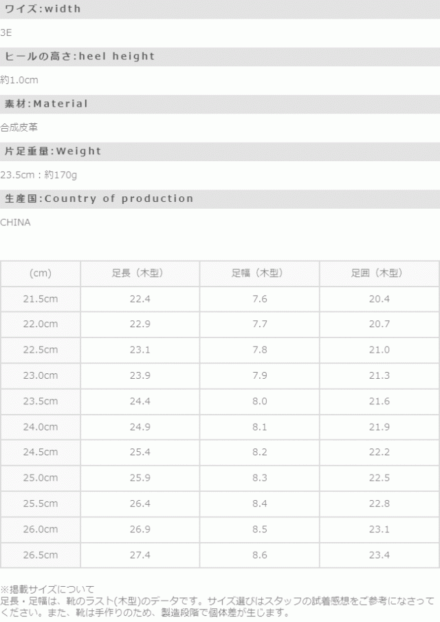 ※掲載サイズは、靴のラスト(木型)のデータです。
