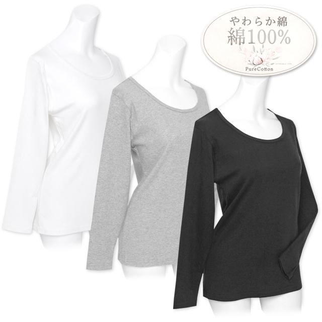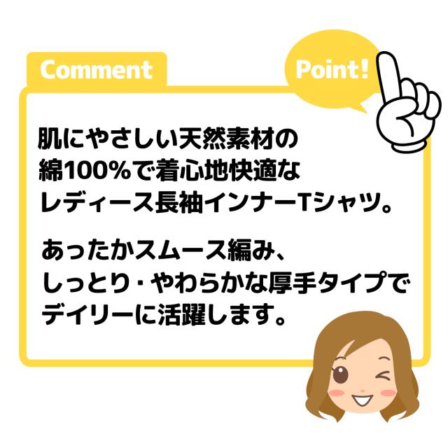 【送料無料】レディース 婦人 肌着 下着 インナー 長袖 Tシャツ 綿100% 厚地 肌に優しい天然素材 M L LL k-0014【メール便対応】