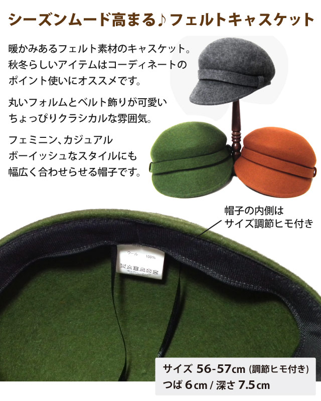 秋らしいウールフェルト 帽子 レディース 秋冬 キャスケット 新色入荷 まん丸綺麗なシルエット つば 短め クラシカル ベルト飾り 56-57cm hat-1372 帽子 ミリタリーキャップ ジョッキー帽 大人 ワークキャップ 男女兼用 56cm 57cm 制帽