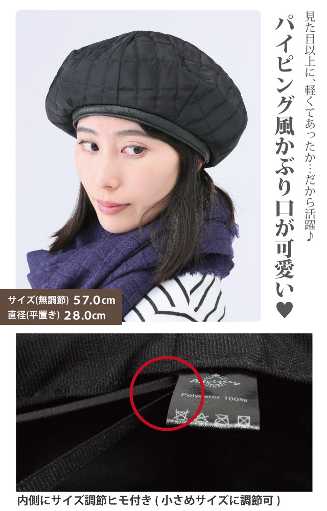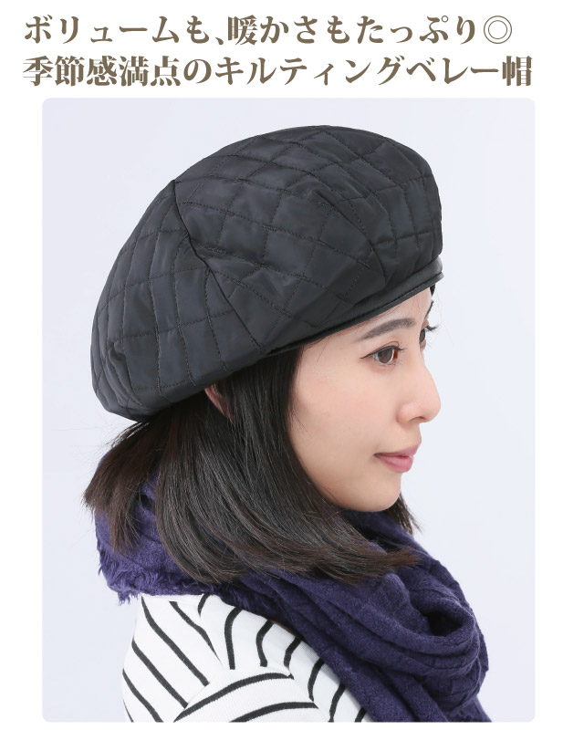 軽さ・暖かさ◎シルエットもボリュームたっぷりのキルティング生地ベレー帽。