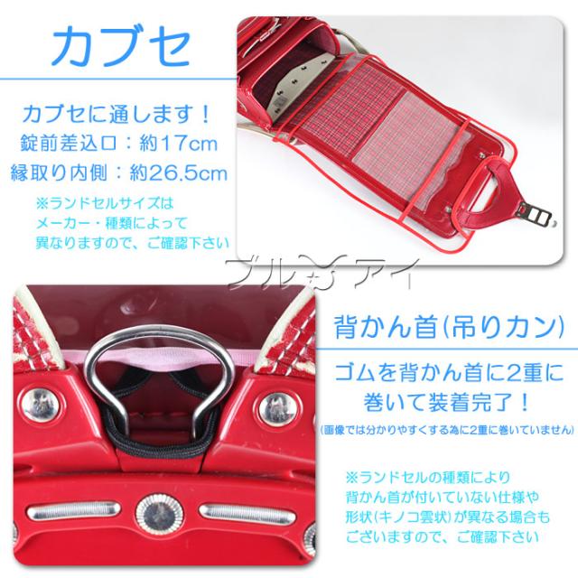 - 少し長さが足りませんでしたがセイバンのランドセルに使用できます、ゴム部分に紐を結んで調節しました。クリアです