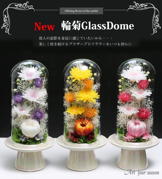 新盆 初盆 プリザーブドフラワー 仏花 即日配送 お供え 仏壇用 プリザーブドフラワー ケース 法事 供花 喪中はがき お悔やみ 枕花 送料無料 アートフォーシーズン 【New輪菊Glass】