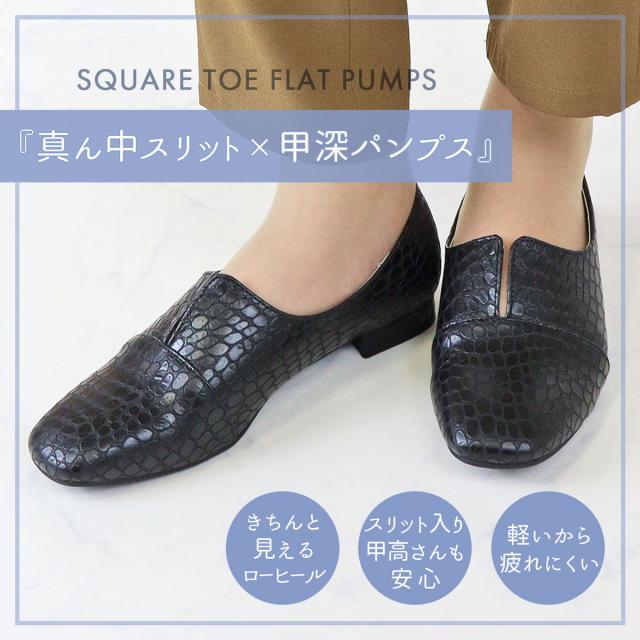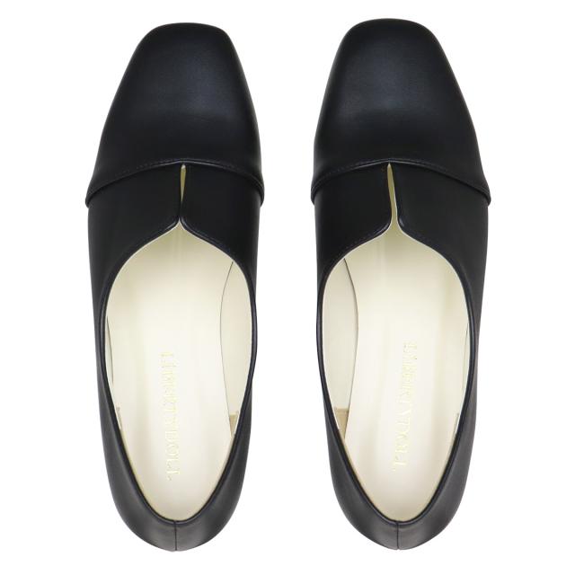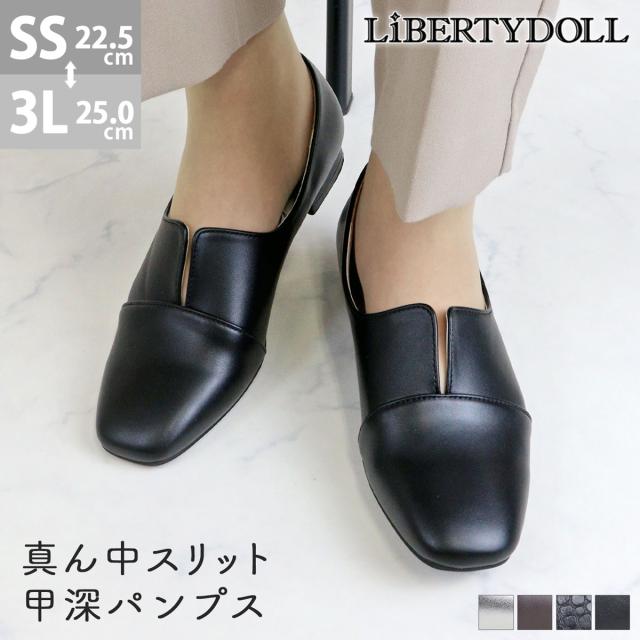 【LiBERTYDOLL リバティードール】のスクエアトゥ 真ん中スリット甲深パンプス。