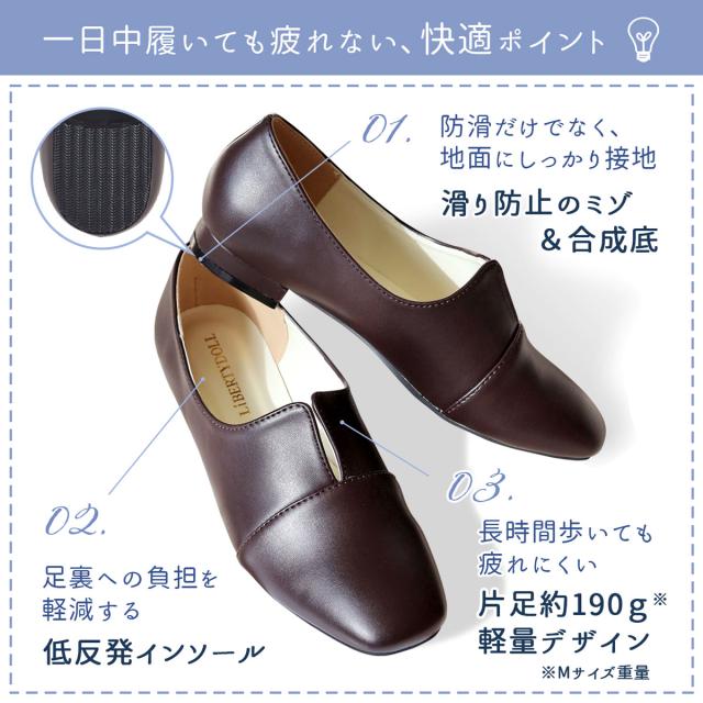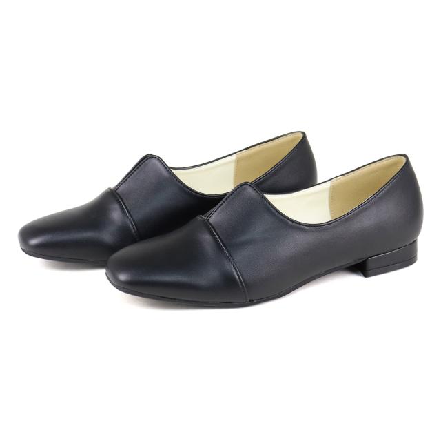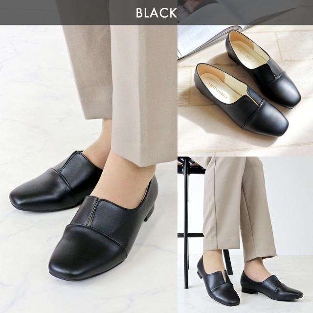 パンプス 痛くない ぺたんこ ローヒール 2cmヒール 軽量 Vカット 22-25cm No.1119 通勤 黒 仕事 歩きやすい スクエアトゥ フラット 合成皮革 レザー カジュアル ブラック ビジネス レディース リバティードール