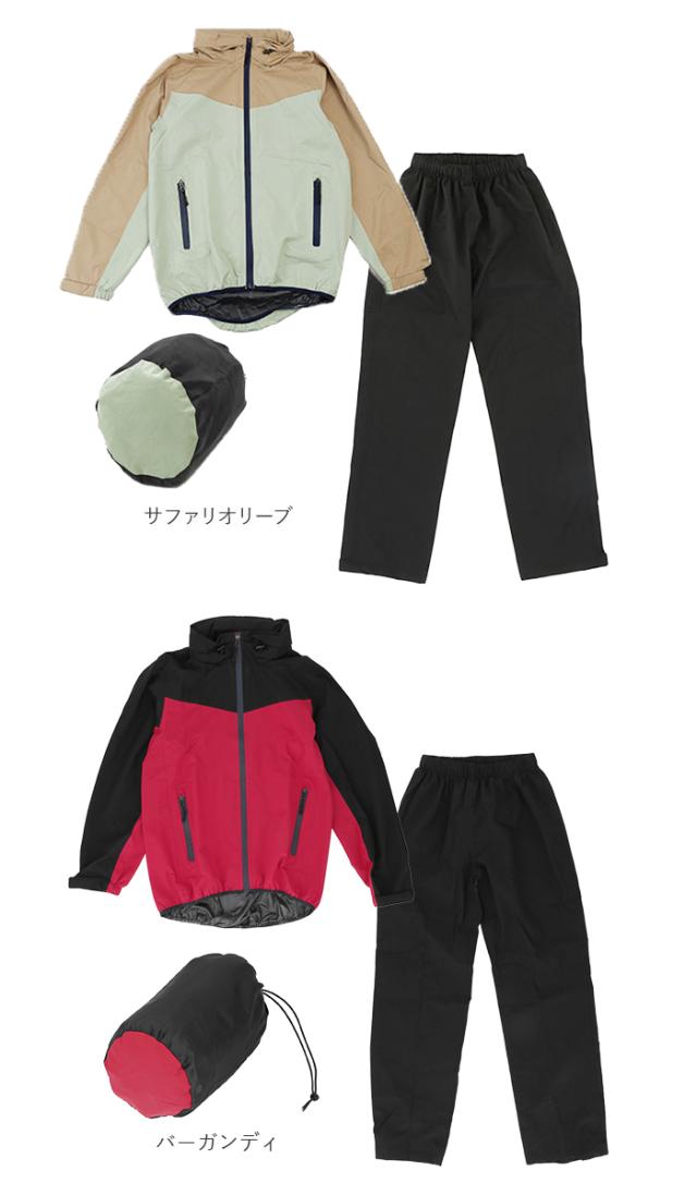 | 商品説明 | ・オールシーズン、雨の侵入を防ぎ、ムレを逃がす!フォーシーズン ストレッチレインウェア。 ・ウェア全体に動きやすいストレッチ性素材を採用。さらに、雨や風は通さずに、発汗によるムレを逃がす透湿防水性の生地で、レインウェアの内側をいつも快適に保つ。(耐水圧10,000mm・透湿度5,000g/m2・24hr) ・フロント前開き部分と、左右のサイドポケットには止水ジップファスナーを採用し、雨の侵入をしっかりとブロック!サイドポケットはA6サイズの手帳やスマートフォンがすっぽり収まるサイズ感。 ・ツバが長めにデザインされた立体型のフードは、くるっとまとめて襟部分に収納可能。フードのかぶり深さをベルクロ式(マジックテープ式)で調節出来て、雨が強めの日にはドローコードで絞ることが可能。 ・ウェアの前裾部分を短めにカットしたデザインで、自転車に乗車する際の前傾姿勢に対応。裾内側に滑り止め加工を施して、ずりあがらない工夫がされたサイクルカット仕様。 ・レインウェアの両袖口とレインパンツの裾は、ベルクロ式テープで調整可能!裾からの雨の侵入もしっかり防ぐ。 ・ウエストゴム式のレインパンツは脱ぎ着がラクに出来て、通勤・通学用ズボンの上から履いてもつっぱらない余裕のあるつくり!股部分が1枚のパネル生地なので、縫い目から水が浸入しづらく、裂けにくいのが特徴。 ・背面にリフレクタープリント付きで、早朝や夜間でもすれ違う車からの視認性が高くなり、安全性を確保。 ・持ち運びに便利な収納袋が付属。通勤用のカバンやリュックに入れてコンパクトに携帯できる! |