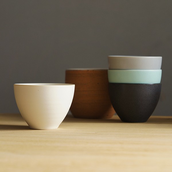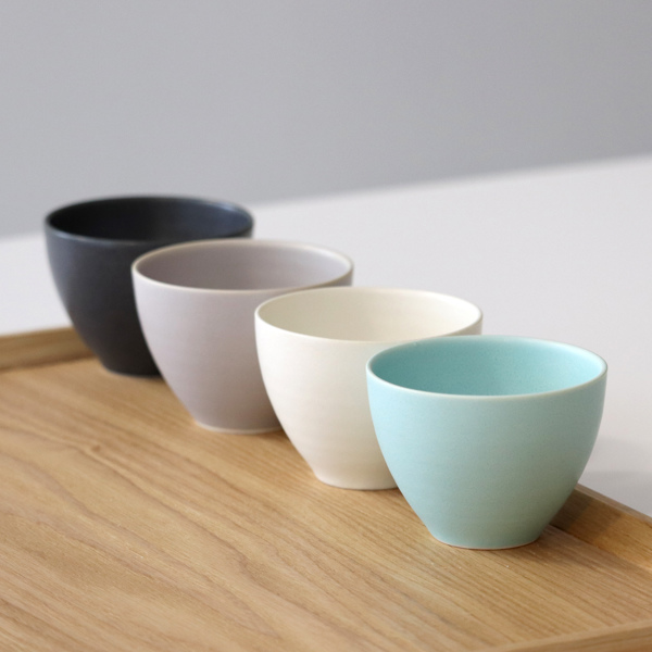 手にしっくりと収まる小さ目サイズの湯呑みです。手触りの良いマットな質感の釉薬と、ころんとしたフォルムが愛らしく、日常に馴染むシンプルなデザインです。細かな所まで行き届いた職人の技術が際立ちます。
