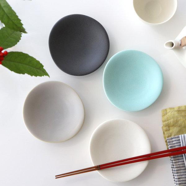 お茶菓子や箸休めの豆皿、湯飲みの受け皿としてなど、幅広く使っていただける小皿です。手触りの良いマットな質感の釉薬と、均一ではないフォルムが愛らしく、日常に馴染むシンプルなデザインです。細かな所まで行き届いた職人の技術が際立ちます。