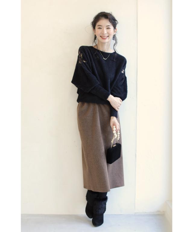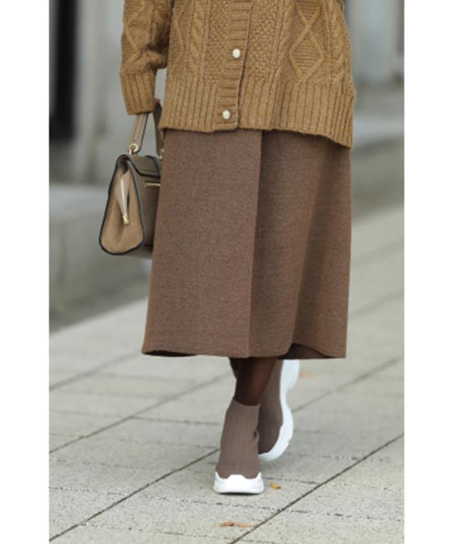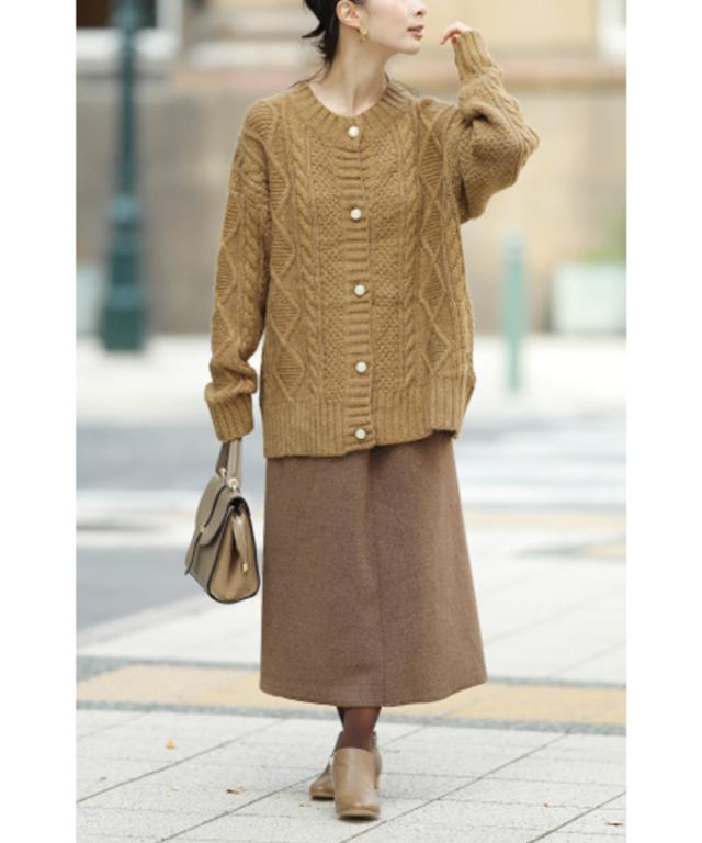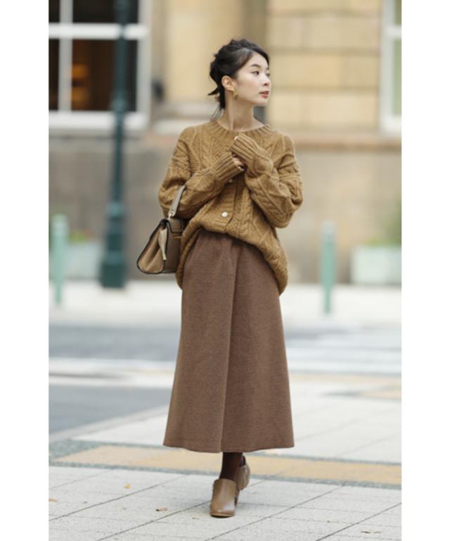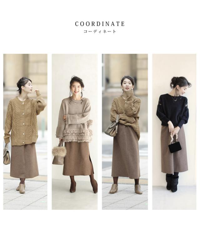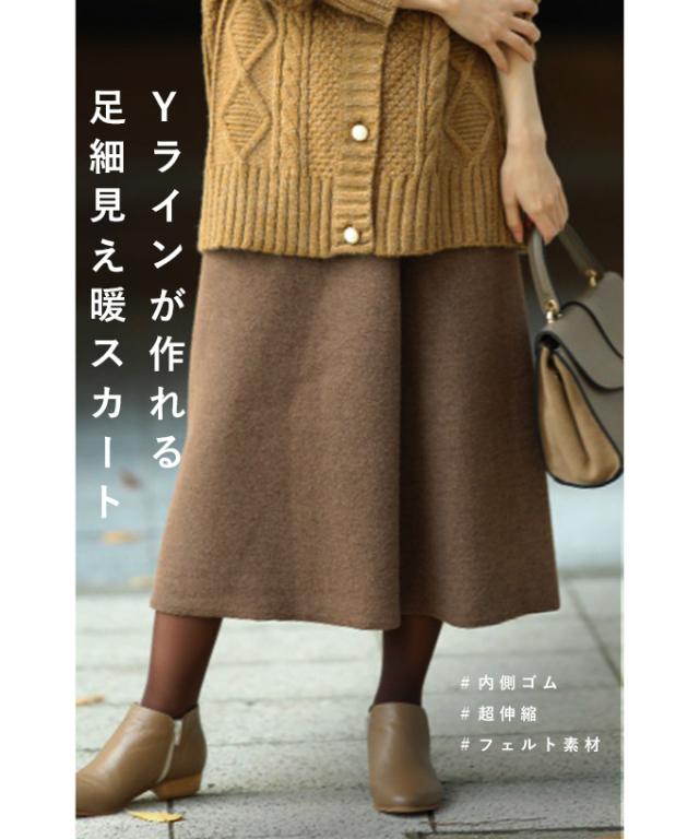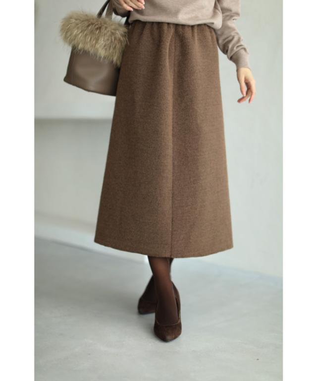 【閉店SALE】 「CAWAII」 w68952(S~L対応)(ブラウン)暖か素材な冬の着回しミディアムスカート スカート