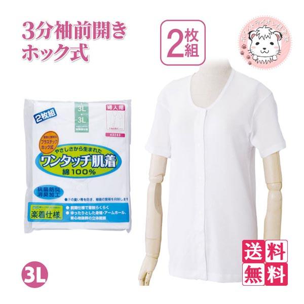 介護インナー ワンタッチ肌着 婦人用 3分袖 プラスチックホック式 前開きシャツ 2枚組3セット 大きいサイズ 3L
