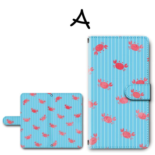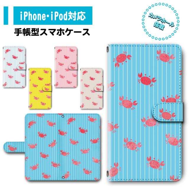 スマホ ケース カバー 手帳型 iPhone iPod iPhone11 iPhoneSE アイフォン 送料無料 カニ 蟹 ストライプ / dc-674