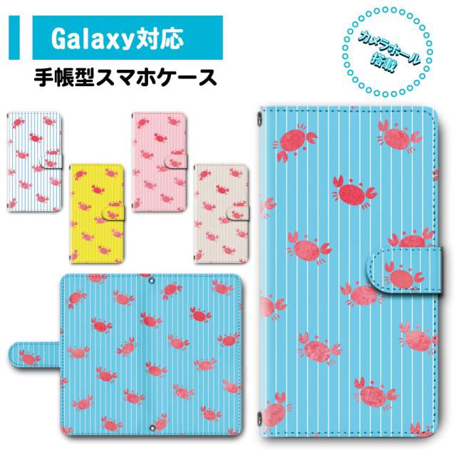 スマホ ケース カバー 手帳型 Galaxy SC-41A SCV48 SC-52A SCG02 ギャラクシー 送料無料 カニ 蟹 ストライプ / dc-674