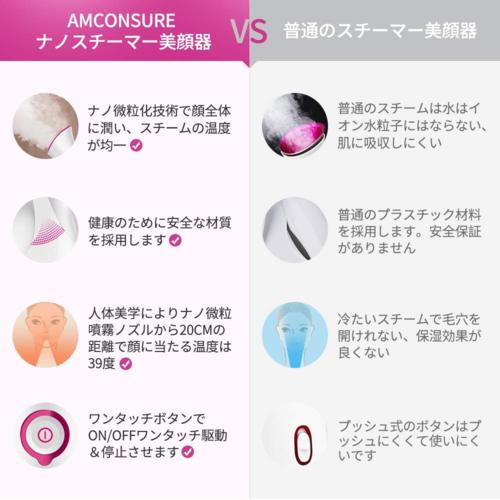 スチーマー美顔器はナノ微粒化技術を採用して、騒音なしとても静かので寝ながら使用できるスチーマーです。水をナノ水分子に変換、肌の角質層を柔らかくします。すべてのお肌に適用でき、普通のスチーマーより粒子が小さくて肌の奥の角質層まで水分子が届くため、長時間潤いをキープできます。