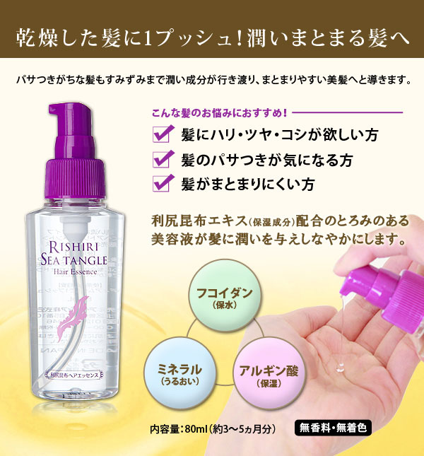 利尻昆布エキス配合 ヘアエッセンス フコイダン・ミネラル・アルギン酸配合!