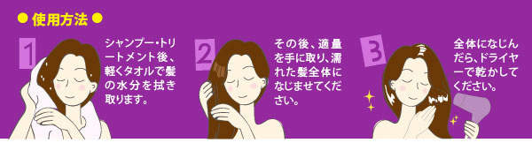 ※本品のつけすぎにはご注意ください。つけすぎると髪がべとつく原因となります。