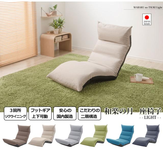 座椅子 リクライニング コンパクト 送料無料 おしゃれ 和楽の月Light 日本製 国産 脚部上下可動 シンプル 贈り物 姿勢 腰痛防止 新生活