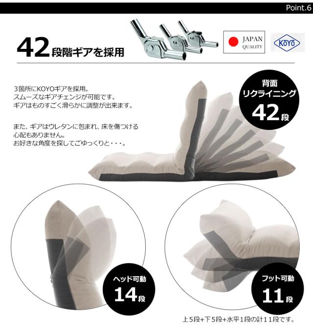 『感動の座り心を。』安心の日本製リクライニング座椅子!6色から選べるフット部は上下可動のギアを採用!フット・背面・ヘッドの3ヶ所リクライニング搭載で満足。