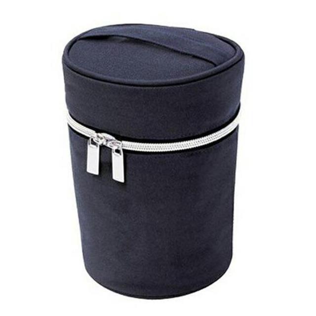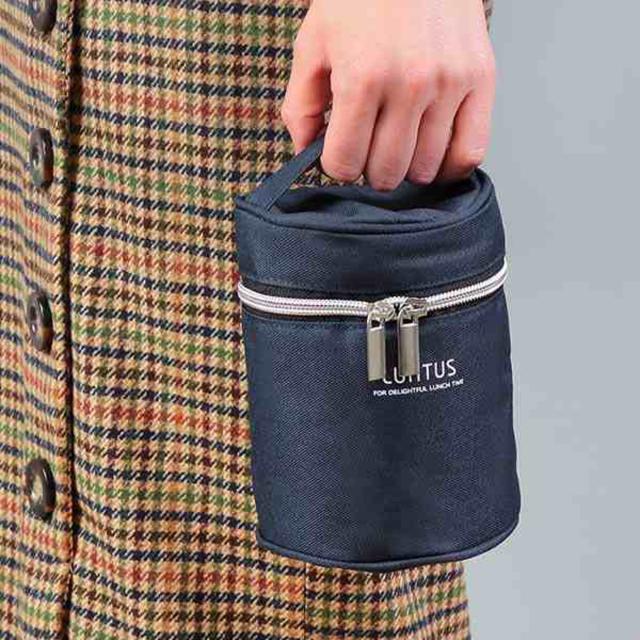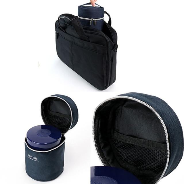 ビジネスバッグにも収まるコンパクトサイズ。大きく開く円形のファスナーは、スープジャーをスムーズに出し入れできます。ケースの内側にはメッシュポケットが付いているので、保冷剤やミニサイズのお手拭き、お気に入りのドレッシングなどが入れられます。