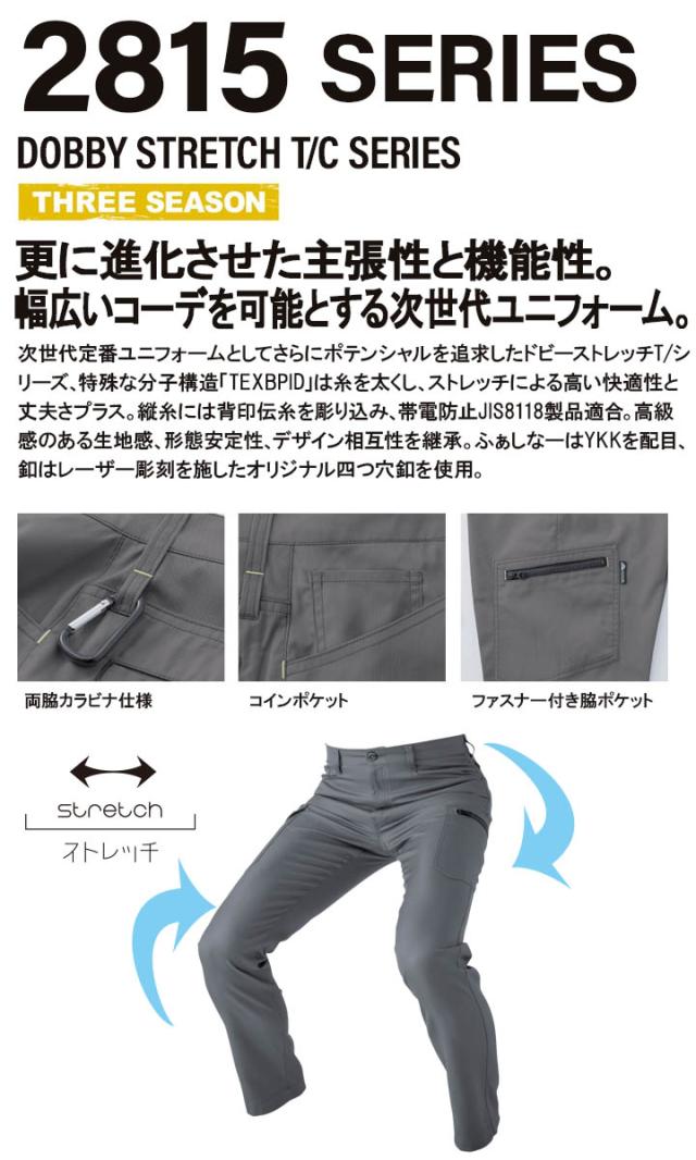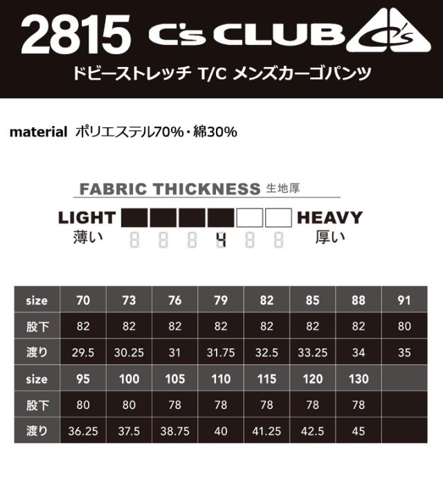 カーゴパンツ 2815 シーズクラブ ドビーストレッチT/Cメンズカーゴパンツ ストレッチ 帯電防止 速乾 ズボン Cs CLUB 作業着 作業服 中国産業 105-130