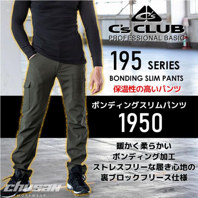 防寒ズボン 防風 中国産業 1950 防寒パンツ ボンディングスリムパンツ 防寒服 防寒着 保温 撥水 起毛 メンズ Cs CLUB 作業着 作業服 【4L-6L】