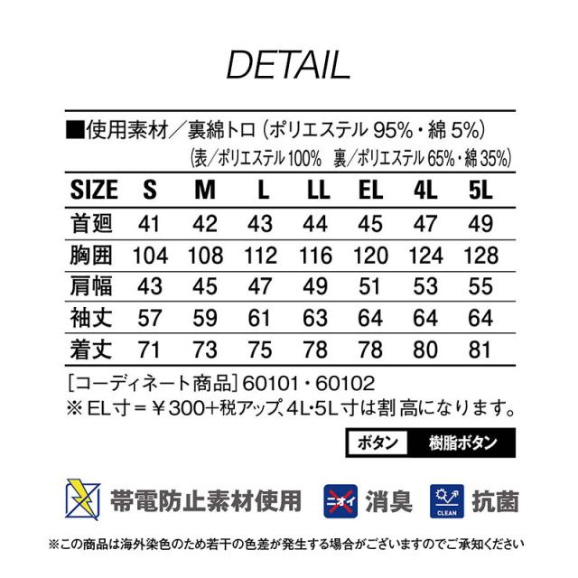 長袖シャツ [年間(定番)] 自重堂 Code Name G 64104 (表/ポリエステル100% 裏/ポリエステル65%・綿35%) 4L ・5L